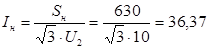 Рис 3.1 Исходные данные к задаче: Мощность энергетической системы: Sм.с = 185 МВ∙А Внутреннее сопротивление системы: xс = 3,4 Ом Число, мощность трансформаторов на ГПП: S = 2∙3,2 МВ∙А Напряжение на высшей стороне: U1 = 110 кВ Напряжение: U2 = 10 кВ Напряжение к.з.: uк = 9,4 % Длина кабельной линии от ГПП до КТП: l = 5,0 км Число часов максимума нагрузки: t = 3600 час. Напряжение: U3 = 0,4/0,23 кВ Время срабатывания релейной защиты: tр.з. = 3,8 сек Время отключения выключателя: tо.в. = 2,2 сек Постоянная времени затухания апериодической составляющей тока к.з.: Та = 0,56 Мощность трансформатора на КТП Sн = 630 кВ∙А Решение Определим номинальный ток трансформатора на КТП: