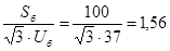 Выберем марку кабеля: ААГ-3х25-10 Проверим выбранное сечение кабеля на нагрев: IДД ≥ Iм По таблице П2.1 (лит 2.) для выбранного сечения кабеля IДД = 65 А Iм = Iн КТП 65 А ≥ 36,37 А - условия выполняются Рассчитаем ток короткого замыкания в точке К1 Определим номинальный ток в точке К1: Расчет ведем в относительных единицах. Зададимся базисными единицами: Sб = 100 МВּА; Uб = 37 кВ, тогда: Iб = Составим схему замещения для данной расчетной схемы (рис 3.2)