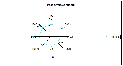 Рисунок 2.2.1 - Липнева роза вітрів.