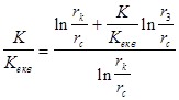 Аналогічно проникність при радіальній фільтрації газу рівна