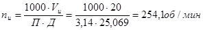 Частота вращения детали рассчитывается по формуле: