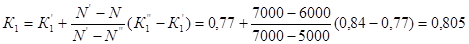 4. Графическая часть4.1 Назначение участкаСлесарно-механический участок предназначен для ремонта деталей слесарно-механической обработкой, кроме базовых деталей и агрегатов, а также изготовления некоторых деталей нетоварной номенклатуры (дополнительных ремонтных, простых осей, валов). 4.2 Краткий технологический процесс на участкеДетали поступают на участок партиями согласно техническим маршрутам со склада деталей, ожидающих ремонта, или с других производственных участков (сварочно-термического, кузнечно-рессорного, ремонта деталей двигателей и др.). После выполнения слесарных и механических работ детали партиями поступают на другие участки (сварочно-термический, гальванический и другие участки). Для выполнения завершающих работ некоторые детали опять возвращают на слесарно-механический участок. Отремонтированные или вновь изготовленные детали поступают на участок комплектования. 4.3 Выбор исходных данныхГодовая производственная программа – 6000 капитальных ремонтов автомобилей ЗИЛ-431410 (ЗИЛ-130). Режим работы предприятия – 253 дней в году по 8 часов в 1 смену. 4.4 Расчет годовой трудоёмкости работ на участкеГодовой объем работ рассчитывается по формуле:Тг =t∙n∙N∙Кмр , где t – трудоемкость на единицу продукции, чел.-ч.; n – число одноименных деталей в изделии, шт. n = 1; N – годовая программа. N= 6000 автомашин в год; Кмр – маршрутный коэффициент ремонта. Кмр = 1,04. Норма трудоёмкости для заданных условий рассчитывается по формуле: t =tэ ∙ К1 ∙ К2 ∙К3 , tэ – норма трудоёмкости капитального ремонта автомобиля (агрегата) при эталонных условиях, чел.-ч. tэ = 1,88+1,13=3,01 чел.-ч. (механические + слесарные работы); К1 – коэффициент коррекции трудоёмкости, учитывающий величину годовой производственной программы; Коэффициент К1 определим по таблице 36.5, Л-2 методом интерполирования по следующей формуле: