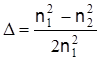 Рис. 2 Аксиальный луч (1) проходит меньший путь, но в среде с большим показателем преломления. Периферийный луч (2) проходит больший путь, но в среде с меньшим показателем преломления. В результате время пробега лучей выравнивается и расширение импульса за счет модовой дисперсии практически отсутствует, т.к. составляет Тем не менее расчет межмодовой дисперсии в в градиентных световодах производится по формуле: