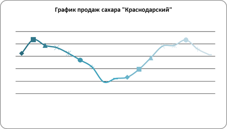 Вывод по прогнозированию потребности в товаре сок «Тонус» Для прогнозирования потребности на товар сок «Тонус» было использовано 4 метода: 1. Простое скользящее среднее 2. Взвешенное скользящее среднее 3. Доверительный интервал 4. Регрессионный анализ При проверке, отклонение от фактических значений минимально по методу регрессионного анализа (1,44). Прогноз будет выглядеть следующим образом: апрель – 43,66; май – 44,04; июнь – 44,42 тонн. 2.2 Прогнозирование потребности в товаре сахар «Краснодарский» на апрель, май и июнь месяцы 2011 годаДля организации снабжения оптовой базы товарами требуется рассчитать потребность в сахаре "Краснодарский" на апрель, май и июнь месяцы 2011 года при наличии следующих данных: