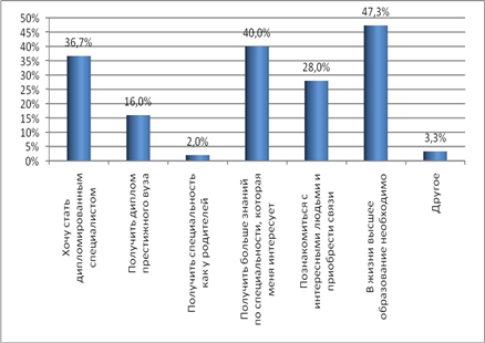Представим полученные данные в обобщенном виде на диаграмме (рис. 8). Рис.8 Дифференциация причин получения высшего профессионального образования