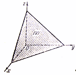 1). Вычислить интеграл , распространённый на тетраэдр , ограничиваемый плоскостями , , и (чертёж ). Решение: Запишем границы изменения каждой из переменных