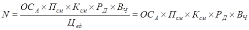 а количество оборудования есть не что иное как частное от деления стоимости ОСА на среднюю цену единицы оборудования Цед . Отсюда формула для расчёта среднечасовой выработки ВЧ принимает вид: