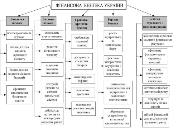 Стан фінансової системи великою мірою залежить від гармонійного взаємозв'язку та розвитку всіх її складових. Фінансова система України ще не набула рис, притаманних ринковій економіці, і знаходиться в стадії формування. Нині фінансові можливості держави, які залежать від обсягу фінансових ресурсів, залишаються досить обмеженими. До того ж дезорганізація цієї системи, що йде поряд з її криміналізацією створює значну загрозу економічній безпеці України і може призвести до вкрай негативних наслідків. Стабілізація економічної системи держави вимагає розробки та реалізації комплексної програми оздоровлення державних фінансів. Важливим інструментом державного регулювання соціально-економічних процесів є Державний бюджет України. Саме розбалансованість Державного бюджету є головним дестабілізуючим чинником кризи державних фінансів. Найважливішими критеріями формування та виконання державного і місцевого бюджетів відповідно до вимог економічної безпеки повинні стати наступні: -відповідність бюджетної політики національним інтересам, а не інтересам політичної кон'юнктури; -забезпечення суверенітету держави у здійсненні національної бюджетної політики; -зміцнення держави на основі забезпечення фінансовими ресурсами можливостей реалізації її функцій у здійсненні внутрішньої і зовнішньої політики; -реальність цілей бюджетної політики та створення умов для їхнього досягнення; -забезпечення самостійності та незалежності Державного бюджету і стабільності його доходів як засобу забезпечення самостійності і незалежності центральної влади від регіонів; -підтримка в бюджетній системі необхідного ступеня залежності регіонів від Державного бюджету; -забезпечення цілісності і єдності бюджетної системи як фінансової основи і передумови цілісності та єдності Української держави; -здатність бюджетної системи забезпечити єдність ринкового економічного простору, фінансової, грошово-кредитної, валютної, банківської та податкової систем; -узгодженість у бюджетному процесі річних і стратегічних завдань державної політики економічного розвитку. Вкрай негативно позначається на забезпеченні національної безпеки України хибна практика щорічного несвоєчасного прийняття Державного бюджету. Тому важливо законодавчо чітко регламентувати процедуру підготовки та прийняття Державного бюджету і передбачити відповідальність посадових осіб за зрив бюджетного процесу. Досягнення на вимогу міжнародних фінансових організацій низького рівня дефіциту бюджету, що здійснюється в основному за рахунок невиконання бюджетних зобов'язань (головним чином хронічних затримок з виплатою заробітної платні та інших соціальних виплат) є неприпустимо з точки зору вимог економічної безпеки. Зниження рівня інфляції досягається засобами жорсткої монетарної політики, органічно не пов'язаної з оздоровленням фінансів. Криза платежів, яка поглиблюється бюджетною заборгованістю, обмеженістю кредитних ресурсів, перебуванням значної частини грошей у позабанківському обігу, бартеризацією обміну, знижує рівень економічної безпеки і посилює соціальну напруженість у суспільстві. До того ж криза платежів призводить до формування так званої боргової економіки, в якій головним боржником виступає держава. Здійснення грошової реформи не бу