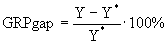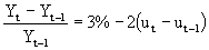 В левой части уравнения записана формула разрыва ВВП. В правой части u – это фактический уровень безработицы, u* - естественный уровень безработицы, поэтому (u - u*) – уровень циклической безработицы, b - коэффициент Оукена (b > 0). Этот коэффициент показывает, на сколько процентов сокращается фактический объем выпуска по сравнению с потенциальным (т.е. на сколько процентов увеличивается отставание), если фактический уровень безработицы увеличивается на 1 процентный пункт, т.е. это коэффициент чувствительности отставания ВВП к изменению уровня циклической безработицы. Для экономики США в те годы, по расчетам Оукена, он составлял 2,5%. Для других стран и других времен он может быть численно иным. Знак «минус» перед выражением, стоящим в правой части уравнения, означает, что зависимость между фактическим ВВП и уровнем циклической безработицы обратная (чем выше уровень безработицы, чем меньше величина фактического ВВП по сравнению с потенциальным). Отставание фактического ВВП любого года можно подсчитать не только по отношению к потенциальному объему выпуска, но и по отношению к фактическому ВВП предыдущего года. Формулу для такого расчета также предложил A.Оукен:
