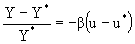 где Y– фактический ВНП, а Y* - потенциальный ВВП. Зависимость между отставанием объема выпуска (в то время ВНП) и уровнем циклической безработицы эмпирически, на основе изучения статистических данных США за ряд десятилетий, вывел экономический советник президента Дж. Кеннеди, американский экономист Артур Оукен. В начале 60-х годов он предложил формулу, которая показывала связь между отставанием фактического объема выпуска от потенциального и уровнем циклической безработицы. Эта зависимость получила название «закона Оукена».