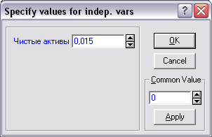 Рис. 9. Значение независимой переменной Результаты прогнозирования представляются в виде таблицы, в которой указаны коэффициенты модели и порядок расчетов (рис. 10).
