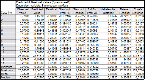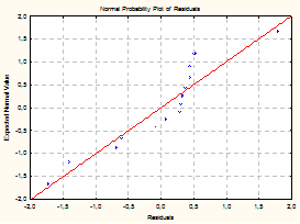 Рис. 6. Анализ ошибок модели График распределения ошибок на нормальной вероятностной бумаге (Normal plot of residuals) приведен на рис. 7.