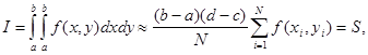 где xi равномерно распределенное на интервале [a, b] случайное число. Справедлива следующая оценка точности вычисления интеграла по формуле (а) с вероятностью p=1-η выполняется неравенство