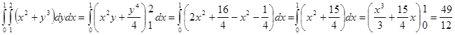 где xi, yi - случайные числа, равномерно распределенные на интервалах [a, b] и [c, d] соответственно. Оценка точности вычисления интеграла по формуле (b) совершенно аналогично приведенной выше для случая однократного интеграла и поэтому здесь не приводится. Пример №1: Вычислить определенный интеграл I = Решение.