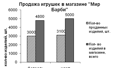 Рис. 5 Структура ассортимента игрушек по ценам Изучив спрос игрушек в магазине «Мир Барби», выявили следующие особенности: Таблица 6 Количество проданных изделий в магазине «Мир Барби» за февраль- март 2009 гг