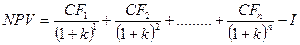 Результат от реализации проекта: Чистый денежный поток составляет 92 923 521рублей Период окупаемости проекта (РВР) называется время, за которое поступления от производственной деятельности предприятия покроют затраты на инвестиции. РВР=41 месяц. Дисконтированный период окупаемости, DPB=61 месяцев. Если поступление доходов неравномерно, то величина срока окупаемости определяется путем последовательного суммирования членов ряда дисконтированных потоков до тех пор, пока не будет получена сумма равная объему инвестиций. Чистая текущая стоимость (NPV) показывает величину, на которую ценность фирмы может прирасти в результате реализации инвестиционного проекта. Рассчитывается NPV с учетом дисконтирования по формуле: