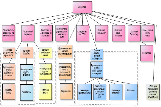 Проанализировав данную таблицу, можно сделать вывод, что в случае вступления в Парк высоких технологий годовая налоговая нагрузка на прибыль компании сократилась бы более чем в 10 раз, а это экономия около 1307 млн. р. Эти факты свидетельствуют об одном – вступление в ПВТ обязательный и изначально правильный шаг компании на пути совершенствования и улучшения своего экономического положения. Также, являясь членом ПВТ, компания может пользоваться еще одним преимуществом – пользоваться льготами на ввозимое оборудование, т.е. это позволит компании «СООО Интетикс Бел» покупать компьютеры и орг. технику не у дилеров в Беларуси, а поручить закупку напрямую у производителей своим сотрудникам (допустим системным администраторам). Это даст существенную экономию при обеспечении компании новыми компьютерами и прочей техникой. Таким образом, вступление в Парк высоких технологий позволит СООО «Интетикс Бел» получить ряд конкурентных преимуществ: 1) существенная экономия на налогах на заработную плату; 2) снижение общей себестоимости программного продукта за счет снижения арендной ставки. 3.3 Изменения в организационной структуре