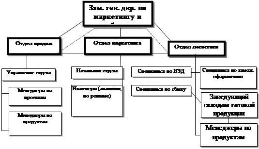 Рисунок 2.2 - Организационная структура службы маркетинга и сбыта Взаимодействие отдела маркетинга и продаж с другими структурными подразделениями представлено в таблице 2.1. Таблица 2.1 - Взаимодействие служб маркетинга с другими структурными подразделениями ЧУПП «ТелеМикс»