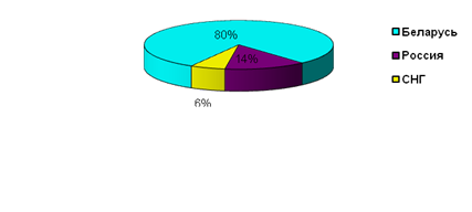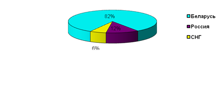 Рисунок 2.3 - Динамика объёма выпуска и реализации продукции за 2007 – 2009 г.г. Из рисунка видно, что в 2008 г. произошло значительное увеличение выручки от реализации продукции по сравнению с 2007 годом (на 25%). Это является следствием увеличения заказов на системы обработки и передачи данных, а также разработку программного обеспечения и консультирование в этой области. Ликвидация части складских запасов позволила объёму реализации превзойти объём выпуска более чем на два млрд. р. В 2009 году в связи с мировым экономическим кризисом объёмы реализации упали почти на 20%. Это связано, прежде всего, с ростом цен на топливо, энергетические ресурсы и снижением покупательской способности стран-импортёров. На рисунках 2.4-2.6 детально представлена структура поставок продукции в 2007-2009 гг. в Беларусь, Россию и страны СНГ.