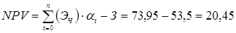 Таким образом, инвестиции в предложенные мероприятия окупятся менее чем за год. Следовательно, комплекс мероприятий весьма целесообразен для их проведения. Расчет чистой текущей стоимости. Чистая текущая стоимость (netpresentvalue - NPV) представляет собой разность дисконтированных на один момент времени (обычно на год начала реализации проекта) показателей дохода и инвестиционных расходов (капитальные вложения). Расчет производится по формуле