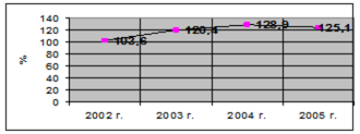 Данные таблицы 2.33. показывают, что затраты на ремонты в предприятии уменьшаются очень высокими темпами. Уменьшение по всем видам основных средств составило более 60% во втором периоде по сравнению с первым. Это негативная тенденция, ведь при существующем в настоящее время качестве основных средств в хозяйстве (более половины из них уже исчерпали свой срок полезного использования), ремонты просто необходимы. Расходы на нефтепродукты – самая изменчивая часть расходов на содержание основных средств, ведь в последние 3 года их стоимость возросла более чем в 2 раза по сравнению с предыдущим периодом. Это связано, прежде всего, с удорожанием дизельного топлива и бензина (табл. 2.34.). Таблица 2.34. Индексы цен на нефтепродукты