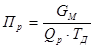 де GM –максимальнаразовавидача корму, кг, взимкузурахуваннямдоданої в суміш води GM = 2; Qр – продуктивність роздавача, кг/год; ТД – час, що відводиться на доставку кормів, год., приймаємо ТД = 0,5год (згідно з розпорядком робочого дня, тривалість приймання та роздачі кормів становить 1год, в тому числі роздача – не більше 0,5год згідно вимог для мобільних роздавачів) [9]. Продуктивність роздавача може бути визначена так: