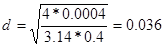 υ – швидкість води в трубах, м/с, υ=0,4…1,25м/с, приймаємо 0,4м/с; π – стала величина, π=3.14,