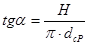 Н = (0,4…1,0), DB =0,077…0,22м, приймаємо Н=0,085м. Ub =153*0,085=13м/с Кут підйому гвинтової лінії