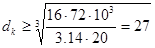 де dк – діаметр вихідного кінця вала, мм; [τ] – допустиме напруження на кручення, [τ]=20Н/мм2 ,