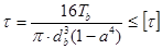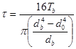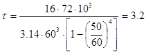 де db – зовнішній діаметр пустотілого вала, db =60мм; d0 – внутрішній діаметр пустотілої частини вала, d0 =50мм; [τ]– допустиме напруження на кручення, [τ]=20Н/мм2 ,