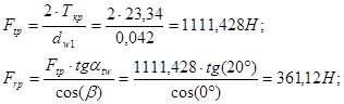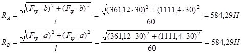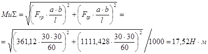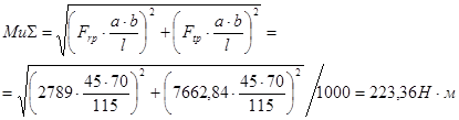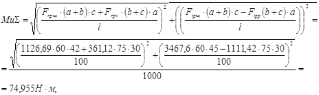 Ftpк=1111,42 Н; Frpк=361,12 Н; Определяем суммарный изгибающий момент в опасном сечении: