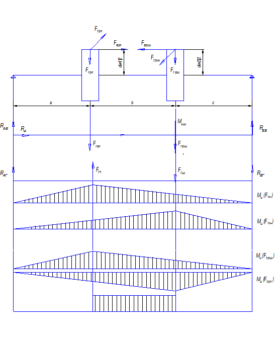 Рис.2 5.3 Проверочный расчет приводного вала Вал представляют как балку на двух опорах: шарнирно-неподвижной и шарнирно-подвижной (рис.1):