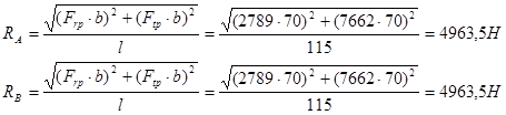 Для наиболее нагруженной опоры (А) рассчитываем эквивалентную нагрузку, принимая (Fr=RA), V=1, Кб=1, КТ=1;