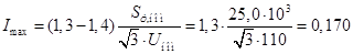 где kотс = 1,2 – коэффициент отстройки, kв = 0,9 – коэффициент возврата. Необходимо проверить чувствительность защиты по току с помощью выражения
