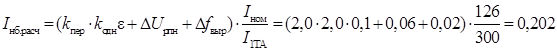 где kотс. – коэффициент отстройки; Рекомендовано значение kотс = 1,5. Значение Iнб.расч определяется с помощью выражения, А,