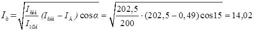 где I1 – наибольший из трех токов сторон ВН, НН ( 5039 А); I2 = Iвн + Iнн1 + Iнн2 – I1 = 126+690+ 690 –5039 = -3533 А – сумма всех токов за исключением I'1 ; a - угол между векторами токов I1 и I2 , в проектных расчетах может быть принят 10–20 °;