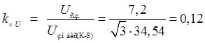 Номинальные первичные напряжения трансформатора напряжения стандартизированы в соответствии со шкалой номинальных линейных напряжений сети. Номинальные вторичные напряжения, В, установлены равными 100 и Коэффициент трансформации трансформатора тока равен отношению номинального первичного тока к вторичному