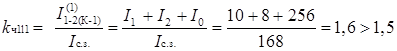 5.4 Защита от однофазных коротких замыканий Проверим, сможет ли МТЗ служить для защиты от однофазных КЗ. Определим коэффициент чувствительности защиты к току однофазного КЗ