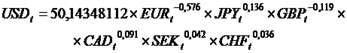 Розрахунок індексу долару (USDX) за корзиною з шести валют не є випадковим – він співпадає з даними, що використовуються Федеральною Резервною Системою США при розрахунках торговельно-зваженого індексу долару за валютами тих країн, які утворюють основний зовнішньоторговельний обіг США. Найбільша частка міжнародної торгівлі США припадає на Єврозону (57,6%), далі йдуть Японія (13,6%), Великобританія (11,9%), Канада (9,1%), Швеція (4,2%) й Швейцарія (3,6%).