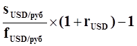 где: rруб –значение рублевой ставки дисконтирования; rUSD – значение валютной ставка дисконтирования; fруб/ USD – форвардный курс рубля к доллару; sруб/ USD – текущий обменный спот-курс рубля к доллару То есть: rруб