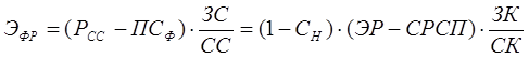 где ЭФР – эффект финансового рычага; РСС – рентабельность собственных средств; ПСФ – фактическая процентная ставка за кредит; ЗС – заемные средства предприятия; СС – собственные средства предприятия.