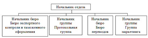 Рисунок 2.5 − Существующая структура ОВСиМ Бюро экспортного контроля и таможенного оформления реализует функцию контроля за соответствием выполнения внешнеэкономических договоров требованиям законодательства Республики Беларусь и международных норм в части ведения внешнеэкономической деятельности, таможенного оформления продукции. В процессе своей деятельности бюро решает следующие основные задачи: участие в согласовании внешнеэкономических договоров (контрактов) на поставку продукции, выполнение работ, оказанию услуг по экспорту и импорту; обеспечение надлежащего экспортного контроля при выполнении внешнеэкономических договоров (контрактов); подготовка обобщенных сведений о состоянии выполнения договорных обязательств по экспорту и импорту продукции для представления руководству предприятия и в вышестоящие органы; организация и проведение работы по оформлению и получению экспортных/импортных лицензий, пропусков Министерства обороны Республики Беларусь; организация и проведение работы по получению сертификатов о происхождении товаров, сертификатов продукции собственного производства; оформление регистрации сделок, таможенное оформление импортных, экспортных товаров, оформление статистических деклараций в соответствии с законодательством Республики Беларусь; получение разрешительных документов на продление сроков завершения внешнеторговых операций в Национальном банке Республики Беларусь; обеспечение методической помощи подразделениям предприятия в области внешнеэкономической деятельности по вопросам, относящимся к компетенции бюро. В соответствии со штатным расписанием в состав группы маркетинга входят четыре человека: Начальник группы, функциями которого являются: стандартные административные функции; разработка маркетинговой стратегии; разработка стратегии развития предприятия в рамках интегрированного маркетинга; формирование требований к разрабатывающим подразделениям по уровню качества изделий в соответствии с достижениями НТП и спроса на рынке; организация каналов получения и распространения информации в рамках интегрированного маркетинга; взаимоотношения с представительствами, работа с совместными предприятиями; Специалист по внешнеэкономической деятельности, выполняющий следующие функции: проведение маркетинговых исследований, анализ положения предприятия на рынке; участие в разработке и реализации маркетинговых мероприятий по планированию производственной, сбытовой, коммуникативной деятельности предприятия; участие в разработке и реализации маркетинговых мероприятий по планированию ценовой политики предприятия; исследование существующих сетей сбыта и систем снабжения; анализ потребительских свойств выпускаемой продукции; отслеживание тендерных предложений потенциальных потребителей; выработка предложений для разрабатывающих подразделения о расширении перечня разработок или о неудовлетворительных перспективах имеющихся разработок; поиск возможностей участия предприятия в экономических объединениях (технопарки, свободные экономические зоны) с целью минимизации затрат и оптимизации прибыли; Маркетологи: участие в маркетинговых исследованиях; участие в разработке и реализации маркетинговых мероприятий по планированию ценовой политики