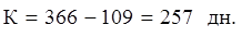где Д − количество дней в году (366), дн.; В − количество выходных и праздничных дней (109), дн.