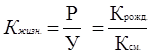Кест. = Коэффициент естественного прироста показывает, что число родившихся превышает число умерших за рассматриваемый период на 6 человек из расчета в среднем на 1000 человек населения страны. Коэффициент естественного прироста (Кест.) за год: Кест. = Коэффициент естественного прироста показывает, что число родившихся превышает число умерших за рассматриваемый период на 12 человек из расчета в среднем на 1000 человек населения страны. 6.Коэффициент жизненности В. Н. Покровского (Кжизн.) за промежуток с 01.01.2000 по 20.01.2000 :
