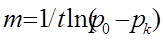 где Значение mзависит от величин р0 и рк и находится из формулы