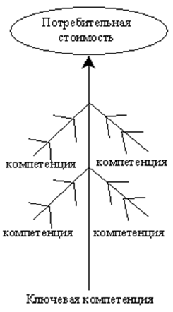 Рис. 1.1 Схема ключевой компетенции компании в отрасли[1] Согласно Г. Хамелу и С.К. Прохаладу, компания должна восприниматься не как совокупность составляющих ее бизнес-единиц, а как сочетание ключевых компетенций - навыков, умений, технологий, позволяющих компании предоставлять своим потребителям определенные ценности. Ключевая компетенция – стратегический потенциал компании. Оперативное управление компанией (умение эффективно вести дела) - способ извлечения выгоды из потенциала. Признаки ключевой компетенции: - значимость для потребителей, их готовность платить за компетенцию как за большую часть приобретаемой ценности; - способность изменяться и подстраиваться под новые требования рынка; - уникальность, малая вероятность повторения конкурентами; - основанность на знаниях, а не на стечении обстоятельств; - связанность с несколькими видами деятельности или продуктами; - актуальность, соответствие стратегическим устремлениям рынка и компании; - возможность партнерства для создания новой ключевой компетенции; - ясность, доступность формулировки компетенции для однозначного толкования. Ключевыми компетенциями могут стать: - знание потребностей рынка и умение регулярно получать это знание; - способность реализовать на практике предложения, необходимые рынку; - способность постоянно наращивать и развивать свою ключевую компетенцию. При грамотных действиях ключевая компетенция приводит к созданию уникальных продуктов, обеспечивает компании первенство при выходе на новые рынки и весомые преимущества в решении задач, которые станут полем жесткой конкуренции. В условиях конкуренции компании стремятся к защите ключевой компетенции, чтобы сохранить конкурентное преимущество. Своевременное понимание ключевой компетенции открывает путь к долговременному лидерству на рынке, а завоеванное лидерство, в свою очередь, требует сосредоточить усилия на ключевой компетенции. Также существует персональная (индивидуальная) компетентность: 1. набор личностных свойств, приобретенных и закрепленных индивидуумом (работником) в ходе учебной и/или трудовой деятельности; 2. требуемый для каждой должности набор знаний, умений и способностей. Объекты персональных компетенций – сотрудники, должности. Такие компетенции (ключевые квалификации, soft skills) сотрудников, как правило, являются логическим следствием ключевых компетенций компании, бизнес-стратегии и обеспечивающих их реализацию бизнес-процессов. Разработкой моделей персональных компетенций занимаются HR-подразделения и их подрядчики. В рамках данной курсовой работы персональные компетенции не рассматривает. Хрестоматийные примеры пересмотра ключевых компетенций хорошо известны. Honda, когда-то сменив ключевую компетенцию “производство мотоциклов” на “производство двигателей внутреннего сгорания”, стала именно той Хондой, которую сегодня знает весь мир. Компания SKF, сменив ключевую компетенцию “способность изготавливать подшипники качения” на “способность изготавливать объекты идеальной сферической формы”, открыла новые возможности их применения в технике звуко- и видеозаписи, точной механике и оптике, других отраслях. 1.2 Методы идентификации ключевых компетенций При проведении анализа отрасли, состояния компании, возможностей выбора альтернативных направлений