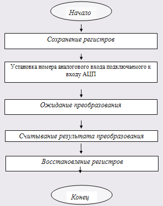 Время распространения сигнала от шины процессора до регистра АЦП превышает время шинного цикла. Так как чтение информации происходит во время второго шинного цикла, данная ситуация не противоречит условиям нормальной работы схемы. 3.3 Программная часть 3.3.1 Разработка программы