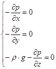где z1 , z2 – высота погружения двух точек жидкости; р0 , р – гидростатическое давление в этих точках соответственно; γ – удельный вес жидкости. Часто основное уравнение гидростатики записывают в следующем виде: р=р0 +ρgh, где р – гидростатическое давление на глубине h от поверхности жидкости; р0 – давление жидкости на поверхности жидкости; ρ – плотность жидкости; g – ускорение свободного падения. Выводится основное уравнение гидростатики из системы дифференциальных уравнений Эйлера:
