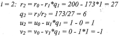 Далее не считаем, так как процесс остановился – получен нулевой остаток. В ответ идут вычисленные на предыдущем шаге значения r5 = 1 – это НОД, u5 = -32 – это коэффициент перед 200, v5 – коэффициент пред 173. 3. Теперь, имея обратный элемент поля (равный 37), мы умножаем его на 151, и затем берем модуль от значения: 37 * 151 mod 200=187; 4. Данное значение и есть х, в уравнении x*173 = 151 mod 200 проверяем: 187*173 mod 200=32351 mod 200 = 151.