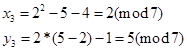Преобразуем, текущее значение к виду: 6*х = 5 mod 7, и также применим алгоритм нахождения обратного элемента Евклида. В результате получим